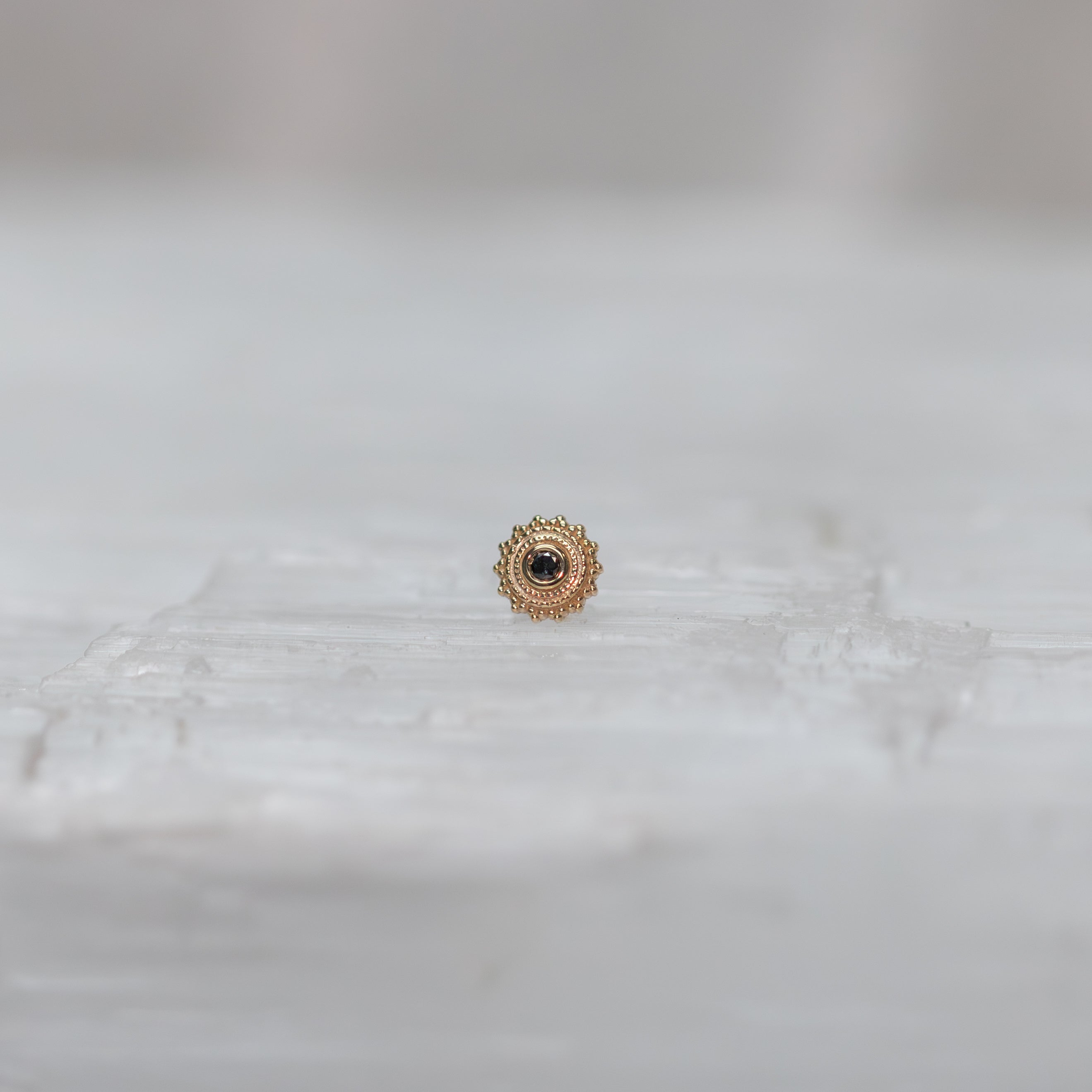 Threadless end with intricate beaded design and a genuine Black Diamond - super flat!