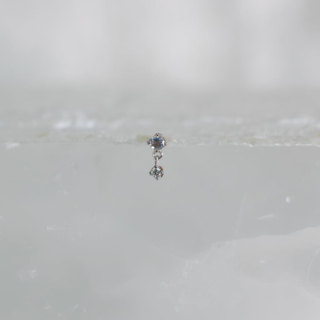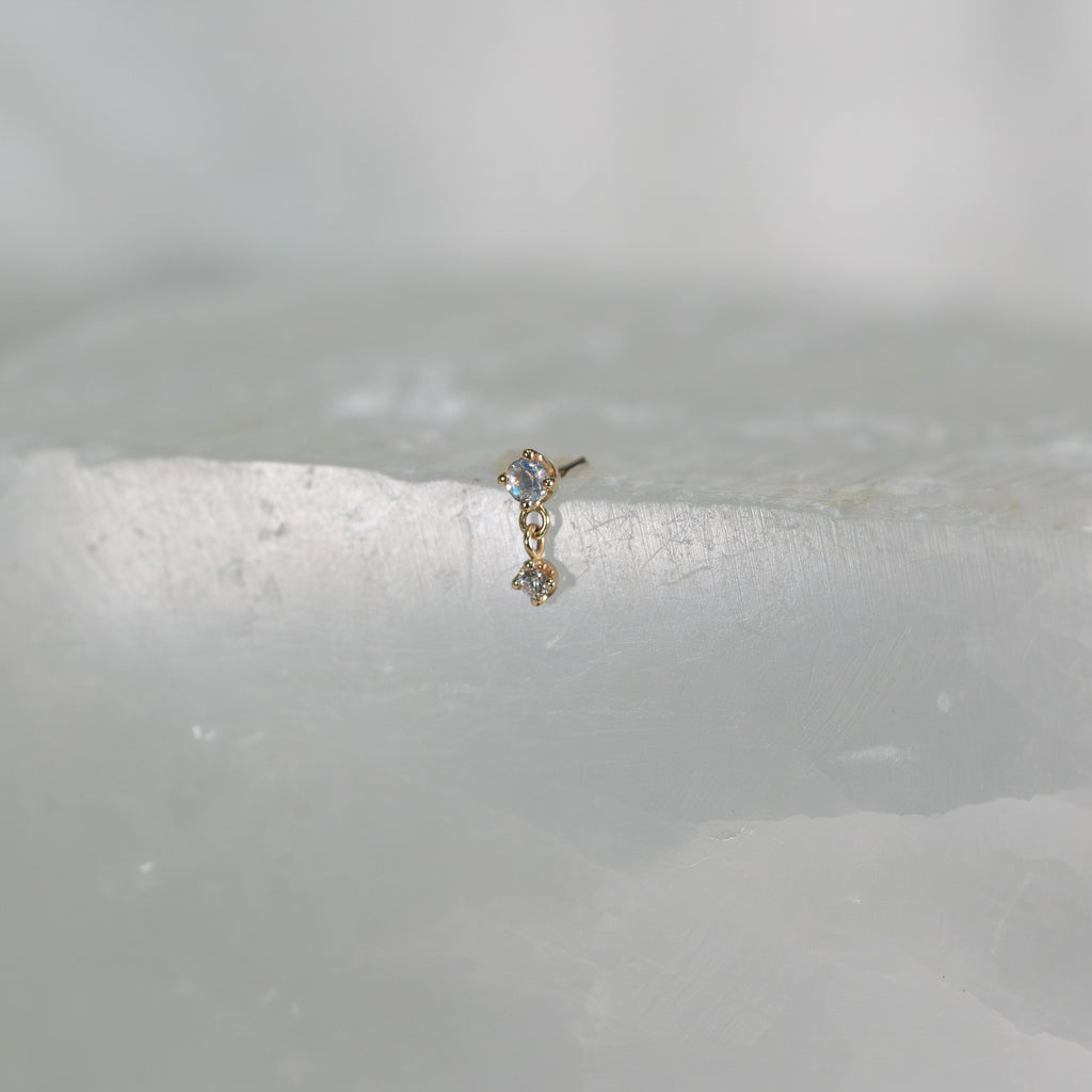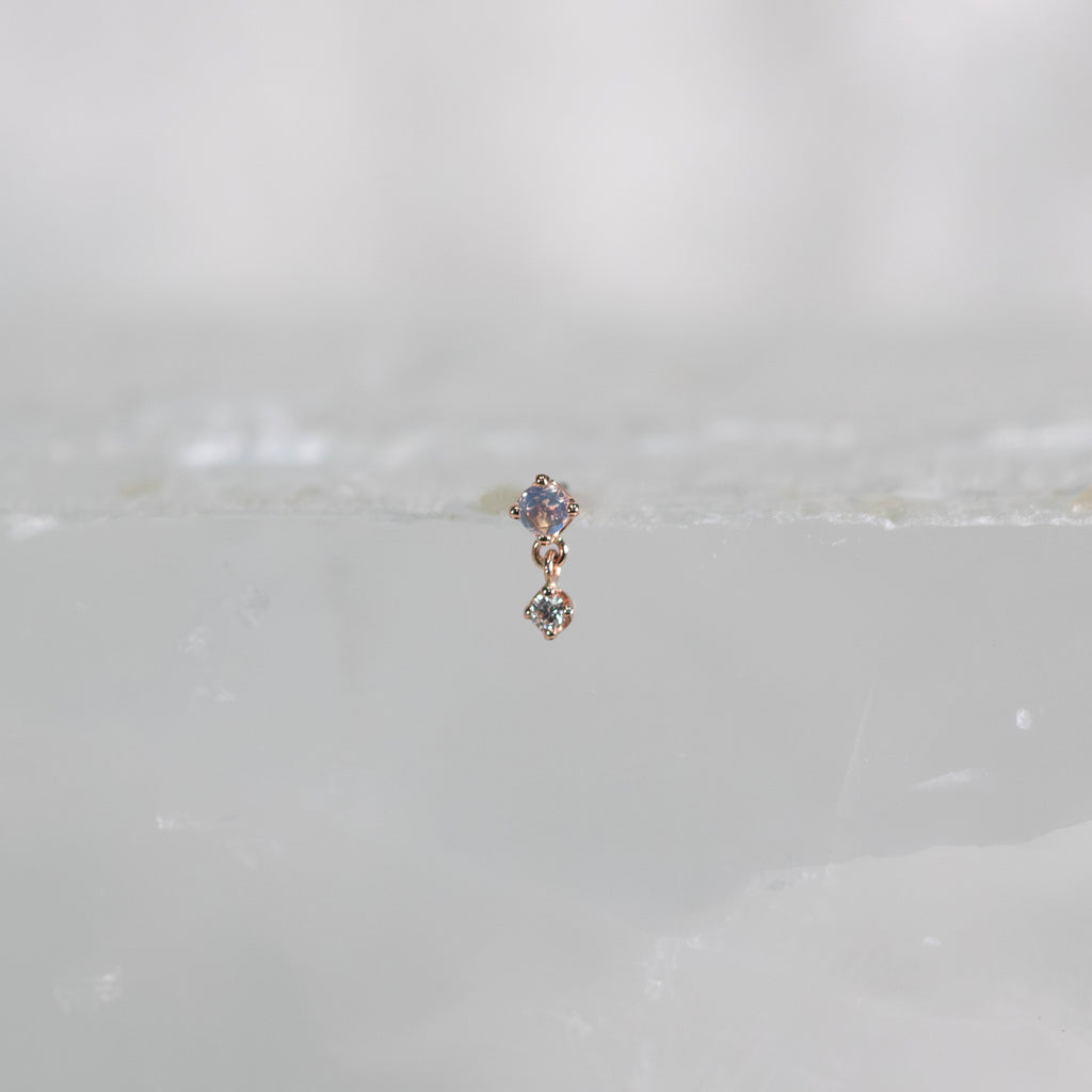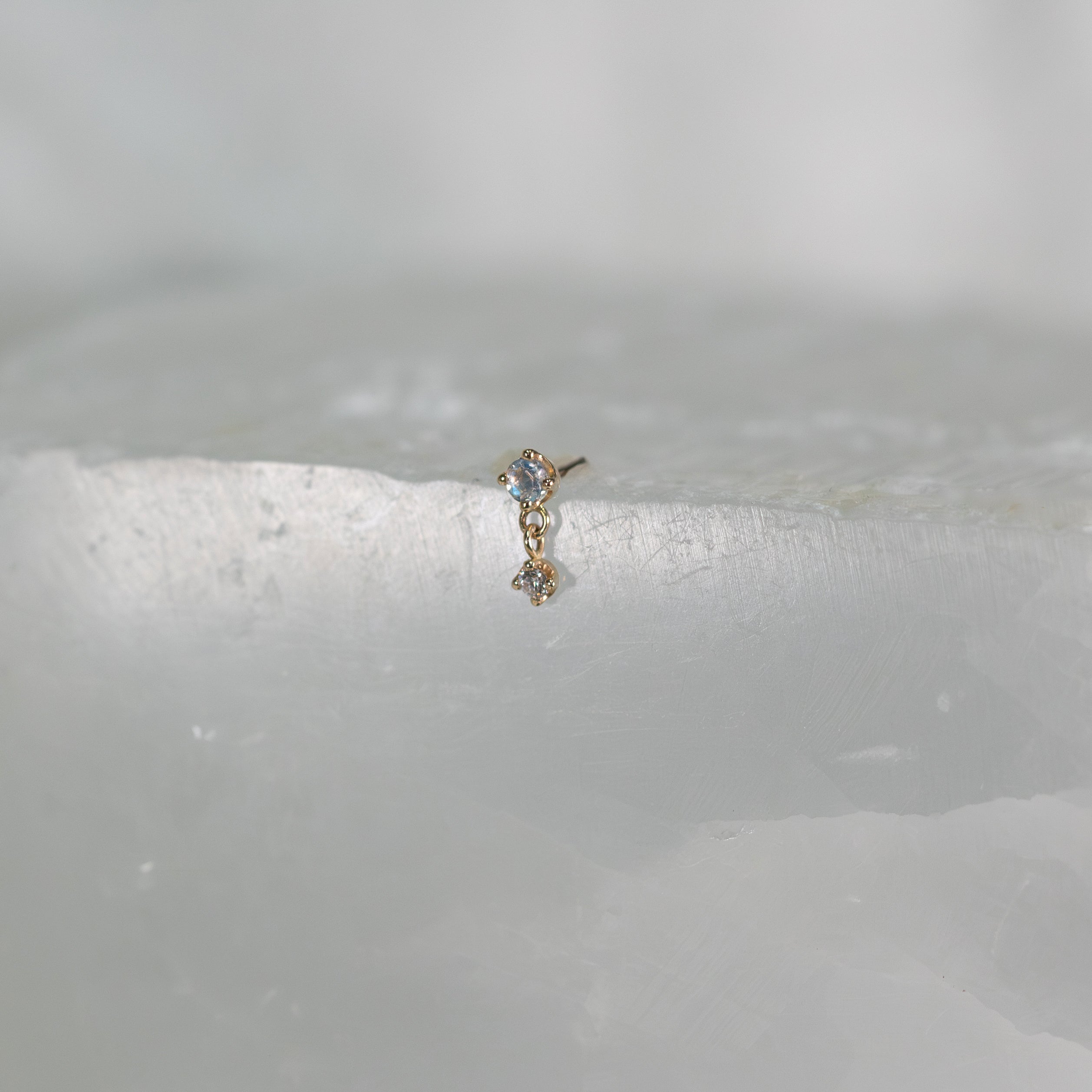 What's better than one prong set gem? Two prong set gems that are attached with a jump ring so one can dangle and add movement to any piercing you wear it in!