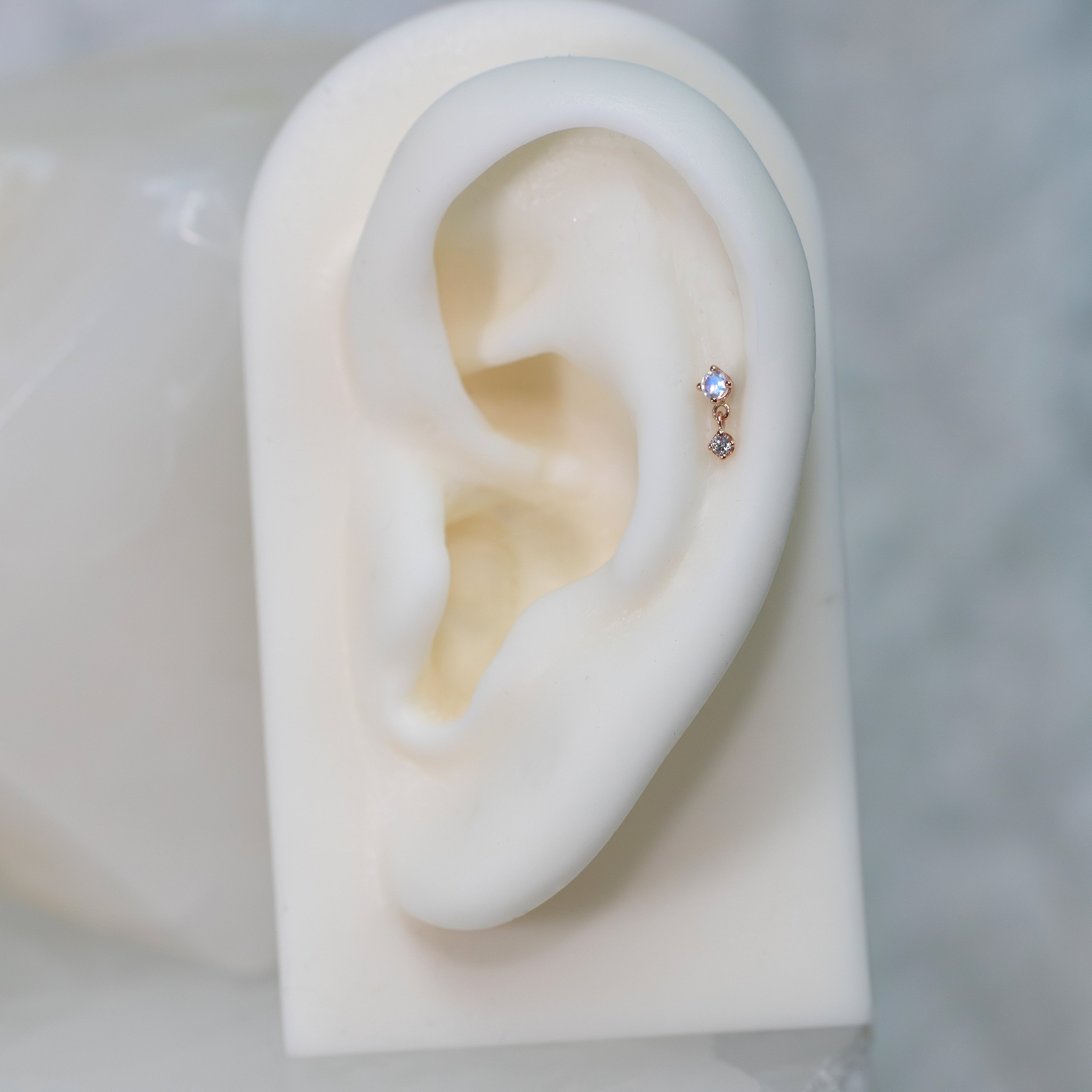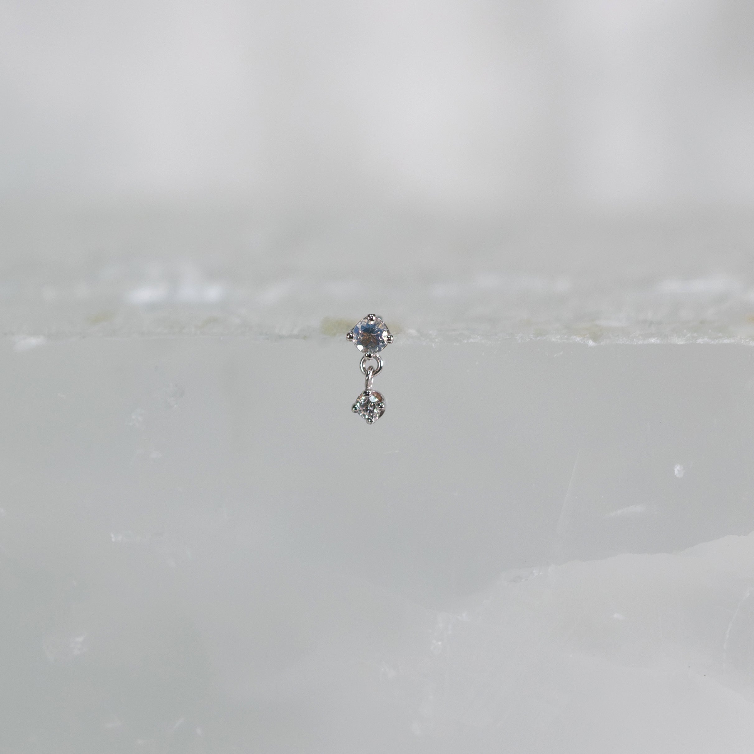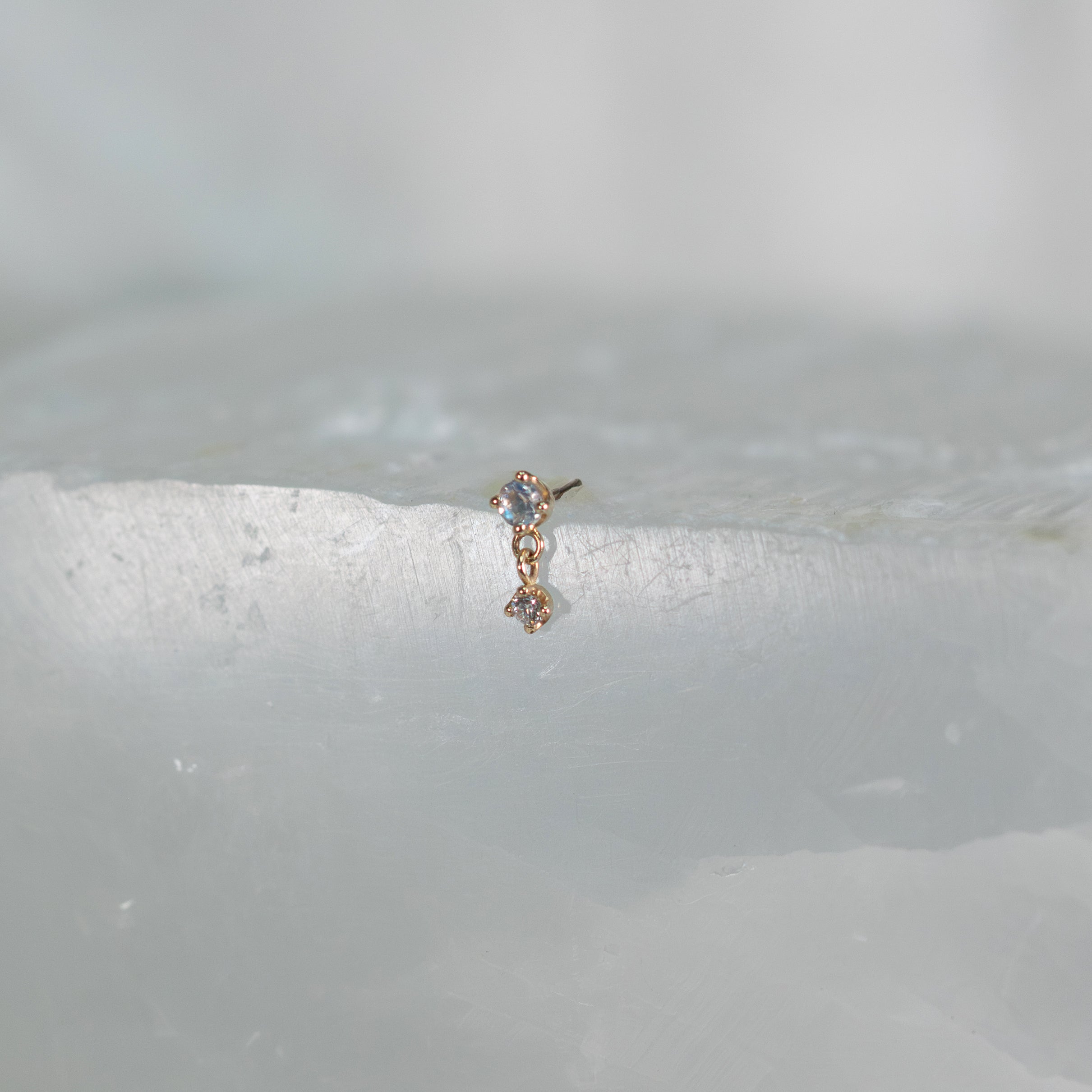 What's better than one prong set gem? Two prong set gems that are attached with a jump ring so one can dangle and add movement to any piercing you wear it in!