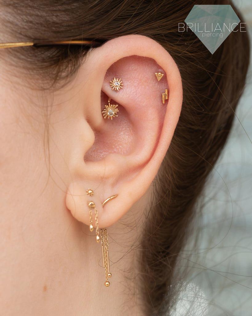 Pupil Hall creates small, limited runs of very unique gold and genuine stone designs. We love the creativity of the designs and fun stone choices. The brand brings fresh ideas to the piercing industry and we are honored to carry them! Check out their website here!