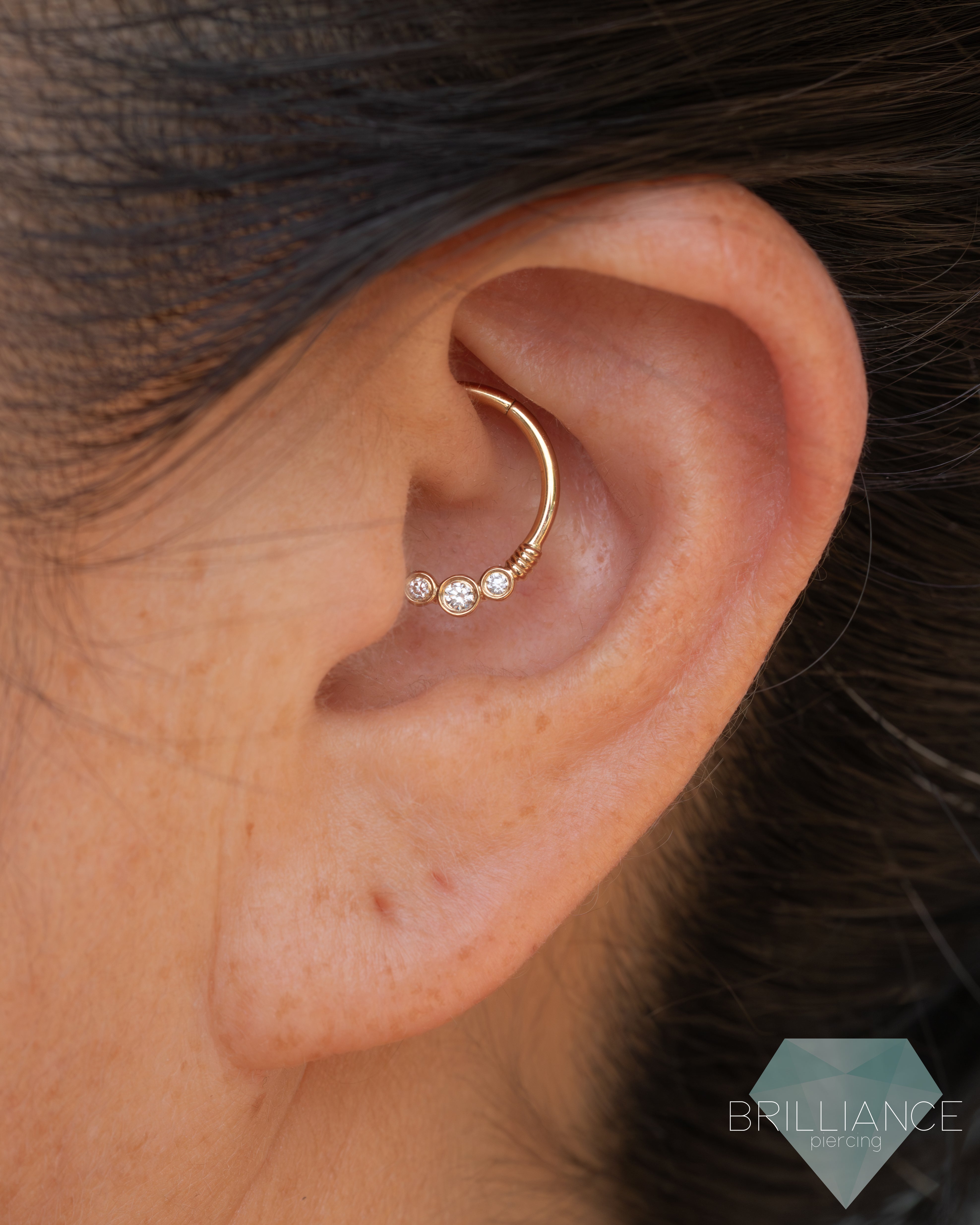 - Forward-facing design looks best in septum & daith piercings (check sizing to see if it will fit your piercing)