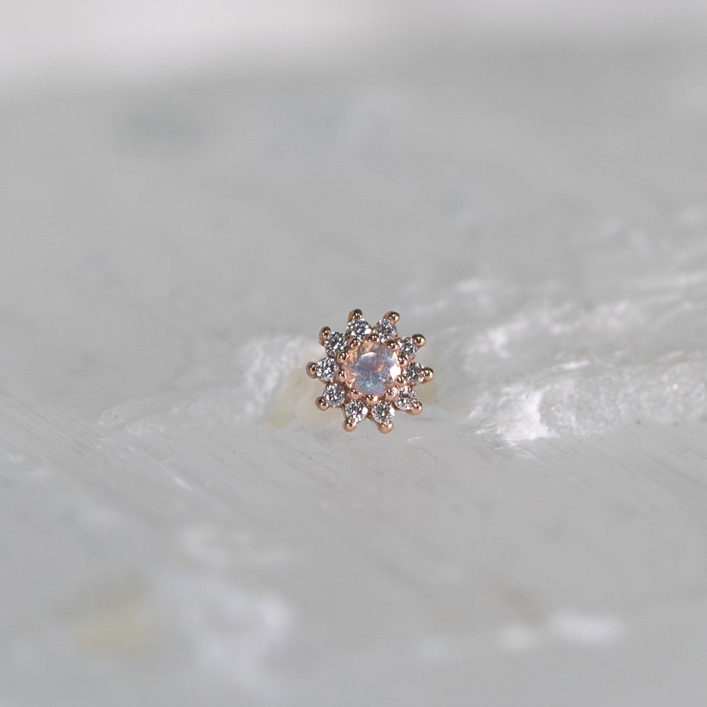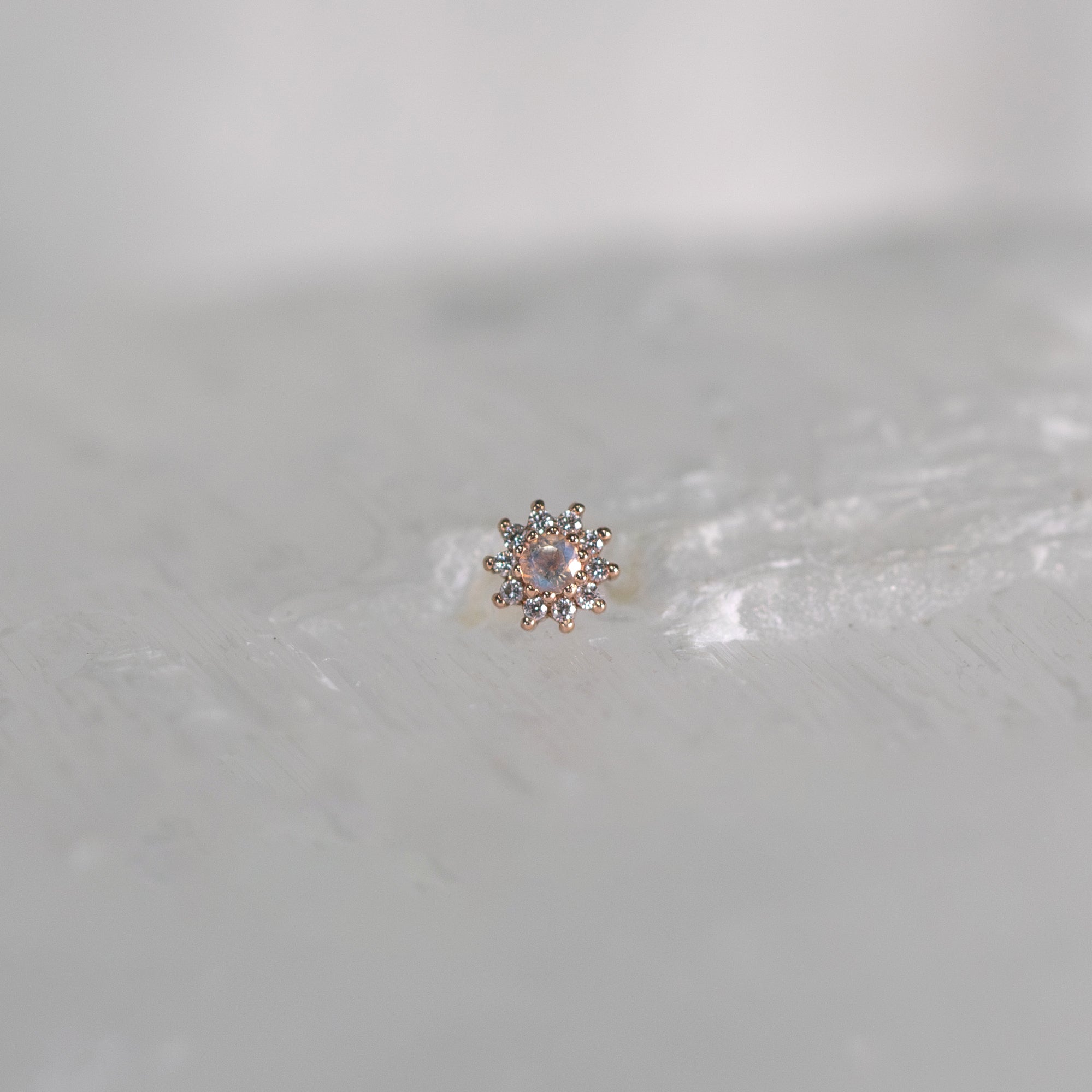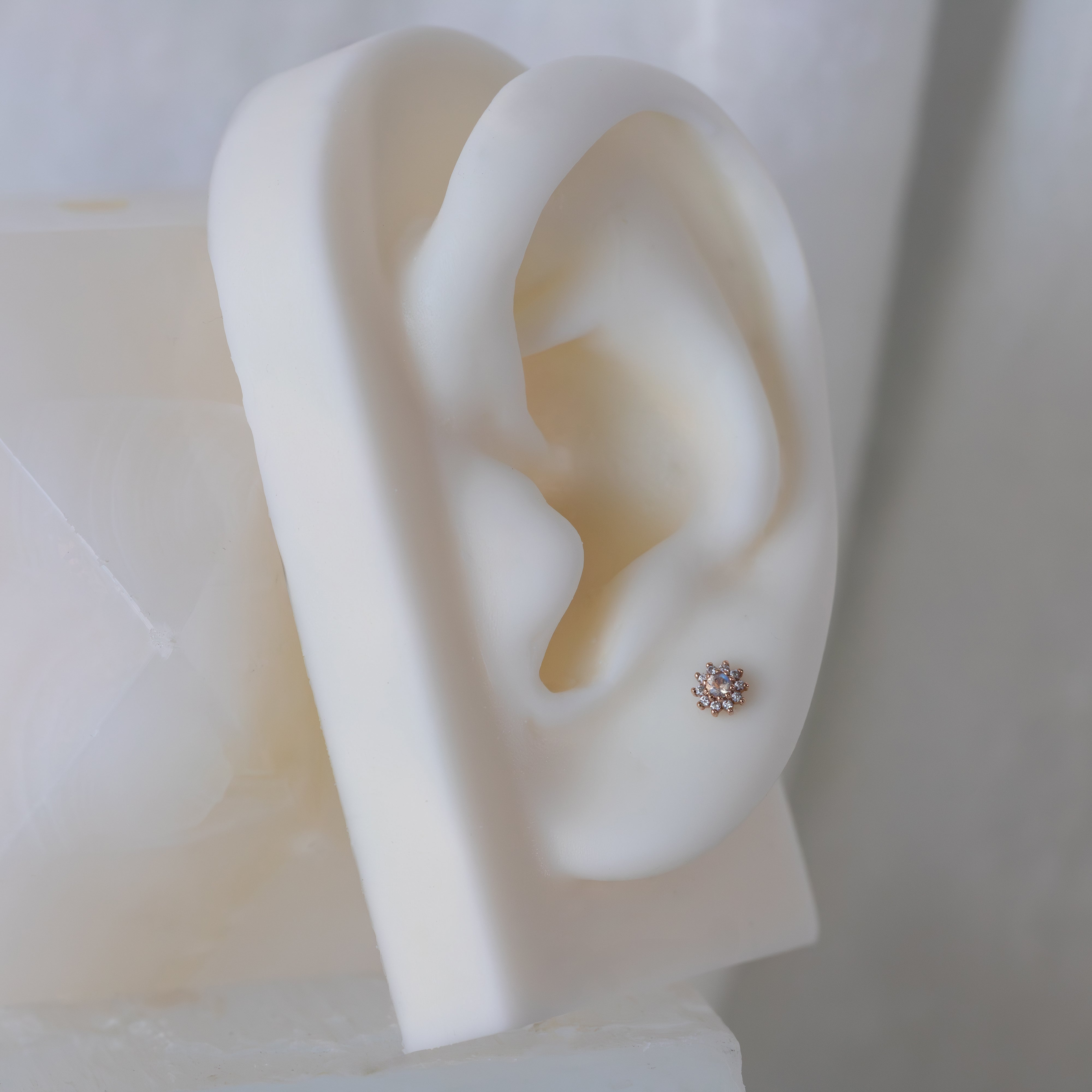 This classic design from BVLA, but make it mini, features a larger genuine center stone surrounded by tiny genuine stones as petals. Makes for a gorgeous center piece in a conch piercing or big and beautiful focal pieces in earlobe piercings.