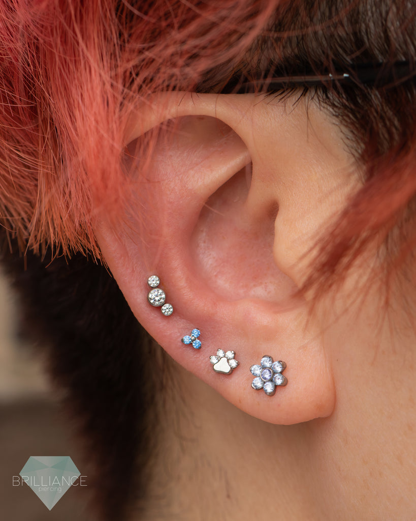 Titanium Trinity with CZs Threadless End - 1.5mm / Aurora Borealis CZ / Implant Grade Titanium is backordered and will ship as soon as it is back in stock.