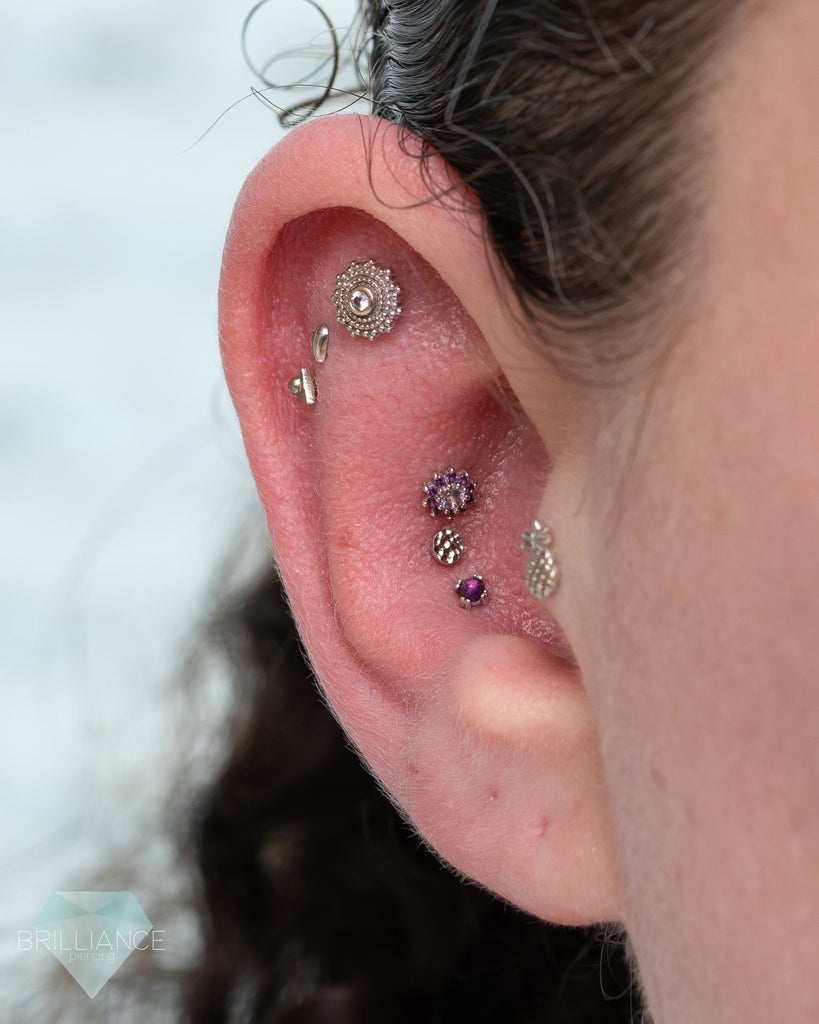 A tiny genuine stone in a very simple, flat, prong setting. It's perfect for a nostril piercing, stacked lobe or anywhere you need something small and sparkly!